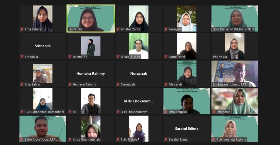 www.iainlhokseumawe.ac.id – Jurusan Tadris Bahasa Indonesia (TBIn) Fakultas Tarbiyah dan Ilmu Keguruan (FTIK) IAIN Lhokseumawe sukses menggelar Webinar Nasional secara daring, pada Jumat (24/11/2023). Bertajuk “Sastra Penguat Identitas Bangsa” diikuti oleh puluhan peserta mahasiswa dan peserta umum.