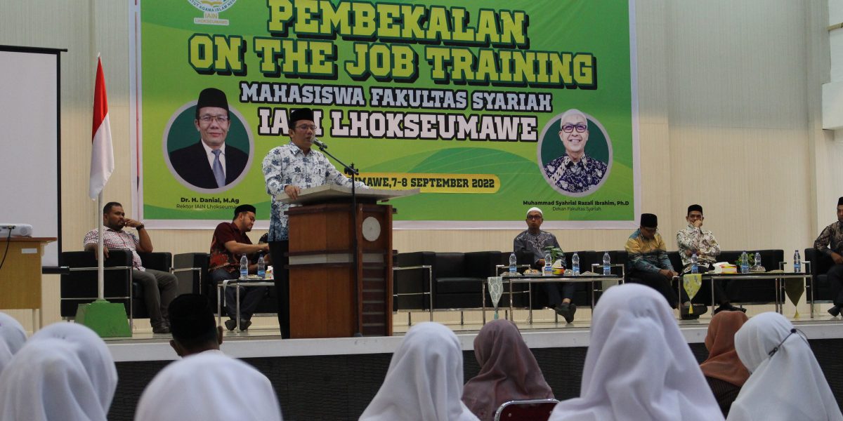 Rektor IAIN Lhokseumawe, Dr. Danial, M.Ag saat membuka pembekalan OJT Fakultas Syariah, Rabu (7/9/2022) mengatakan bahwa, ia mengharapkan kepada peserta agar selama mengikuti praktek agar mempraktikkan keilmuannya ditempat praktek sebaik mungkin.