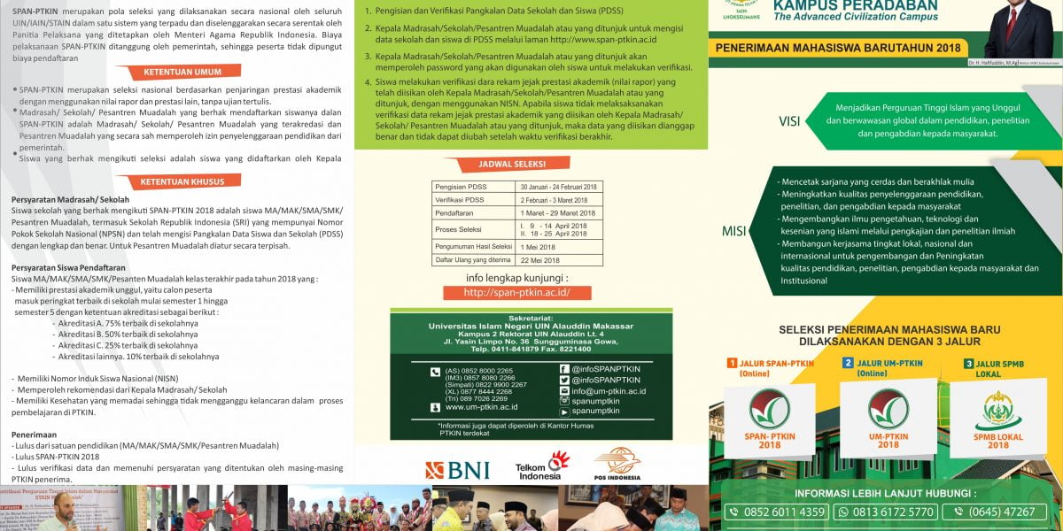 Penerimaan mahasiswa baru tahun 2018 di buka melalui tiga jalur :