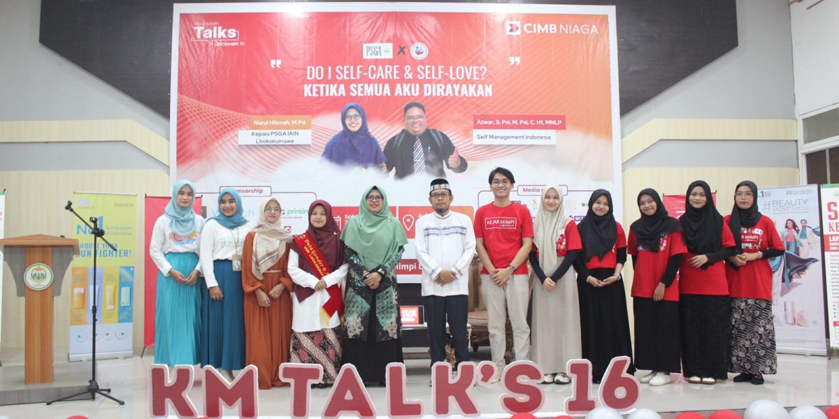 www.iainlhokseumawe.ac.id – Pusat Studi Gender dan Anak (PSGA) IAIN Lhokseumawe berkolaborasi dengan Kejar Mimpi Lhokseumawe by CIMB Niaga kembali menggelar talkshow dengan mengusung tema “Do I Self Care & Self Love Ketika Semua Aku Dirayakan” di Aula Fakultas Ekonomi dan Bisnis Islam IAIN Lhokseumawe, Sabtu (24/2/2024).