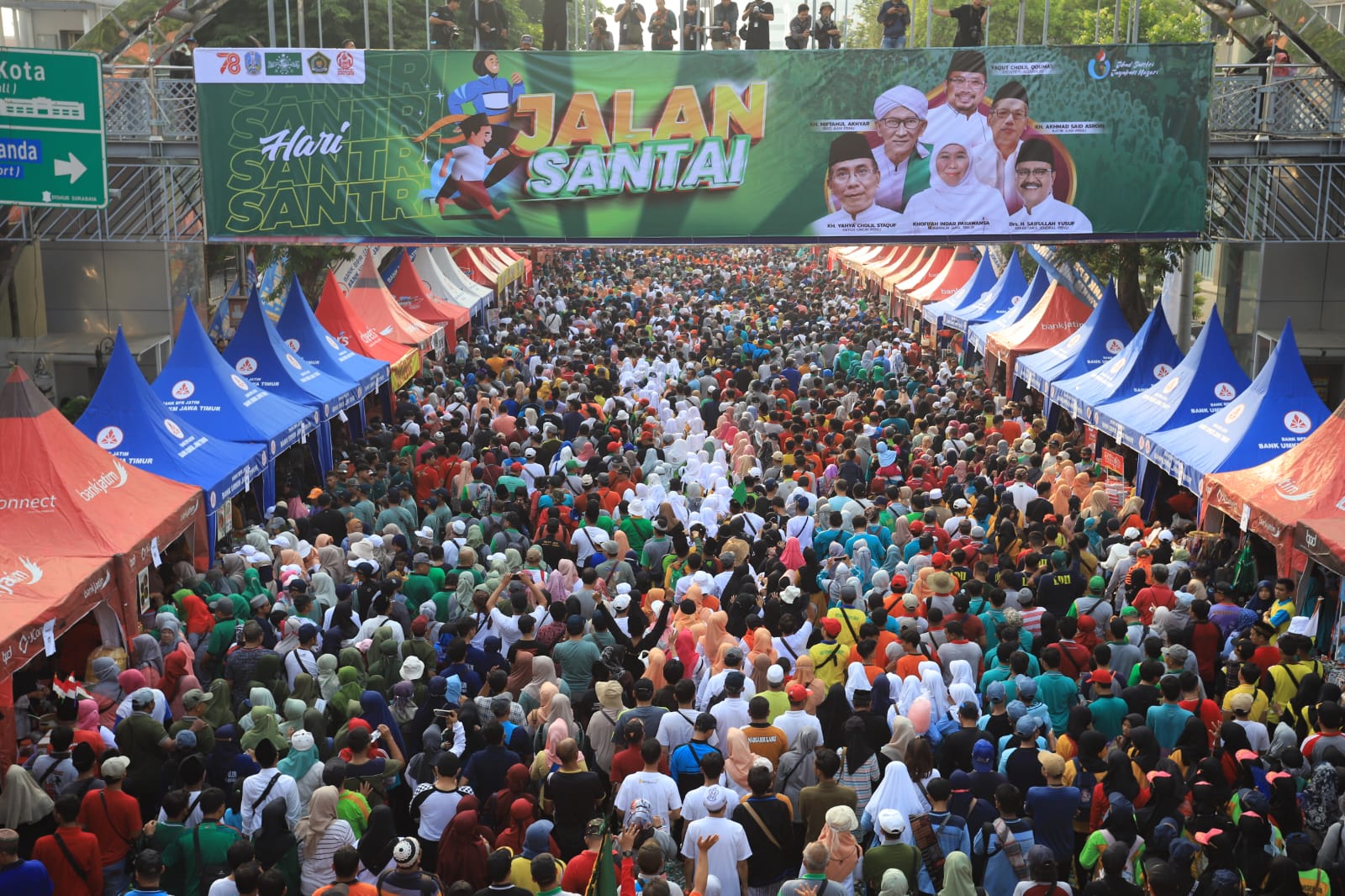 Jalan santai ini diikuti jutaan warga masyarakat dan santri dari berbagai daerah di Jawa Timur, bahkan provinsi lainnya. Mereka memadati sepanjang Jalan Gunernur Suryo, Kota Surabaya, sejak pagi.