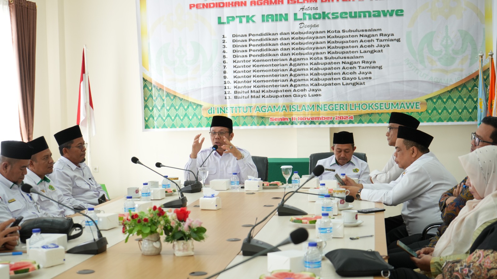www.iainlhokseumawe.ac.id – Dalam rangka program lanjutan pendidikan profesi bagi guru, Institut Agama Islam Negeri (IAIN) Lhokseumawe melakukan penandatanganan perjanjian kerjasama Pendidikan Profesi Guru (PPG) bersama dengan 13 instansi pemerintah daerah. Kegiatan tersebut berlangsung di ruang Op. room Gedung Rektorat IAIN Lhokseumawe, pada Senin (11/11/2024).