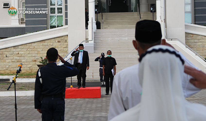 www.iainlhokseumawe.ac.id – Dr. H. Hafifuddin, M. Ag, Rektor Institut Agama Islam Negeri Islam (IAIN) Lhokseumawe menjadi inspektur upacara Hari Amal Bakti (HAB) Ke-75 Kementerian Agama Republik Indonesia, Selasa (5/1/2021). Upacara dipusatkan di halaman utama gedung biro rektorat kampus tersebut.