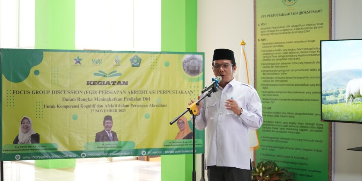 www.iainlhokseumawe.ac.id –Perpustakaan Institut Agama Islam Negeri Lhokseumawe menyelenggarakan Forum Group Discussion (FGD) dalam rangka persiapan akreditasi perpustakaan, Senin (27/11/2023). Forum diskusi ini menghadirkan langsung pemateri Pustakawan Ahli Utama Perpustakaan Nasional RI, Dra. Adriati, S.IP, M.Hum.