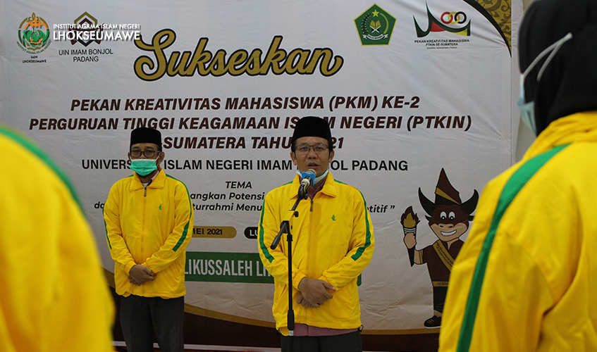 www.iainlhokseumawe.ac.id – Rektor IAIN Lhokseumawe, Dr. Danial, M.Ag melepas kontingen IAIN Lhokseumawe mengikuti Pekan Kreatifitas Mahasiswa (PKM) ke-II Perguruan Tinggi Keagamaan Islam Negeri (PTKIN) se-Sumatera, Rabu (27/5/2021) berlangsung di aula lantai 3 Fakultas Ushuluddin, Adab dan Dakwah.