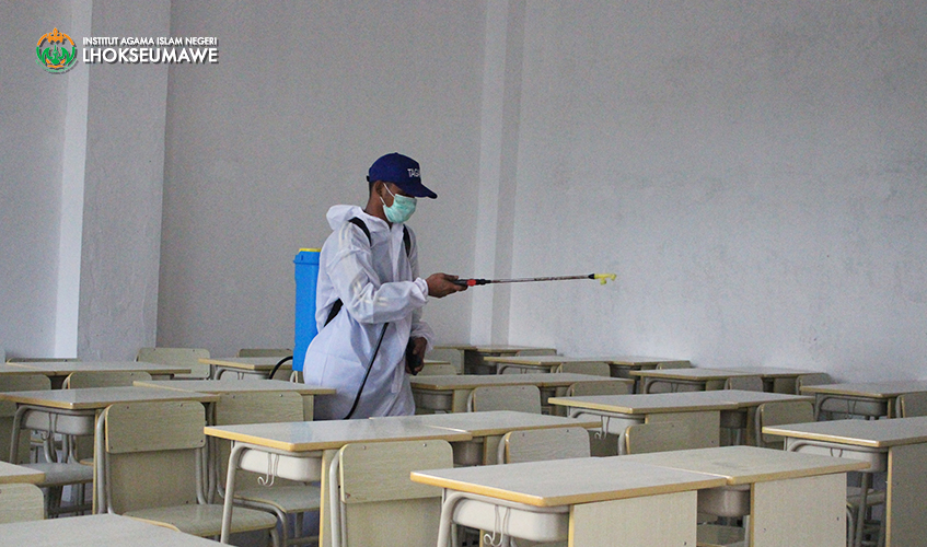 Dr. Danial, M.Ag, Rektor IAIN Lhokseumawe menjelaskan bahwa sejak meningkatnya kasus corona di kota Lhokseumawe dan Aceh utara khususnya dan nasional pada umumnya beberapa waktu lalu, IAIN Lhokseumawe langsung mengambil beberapa upaya preventif untuk mencegah penyebaran virus.